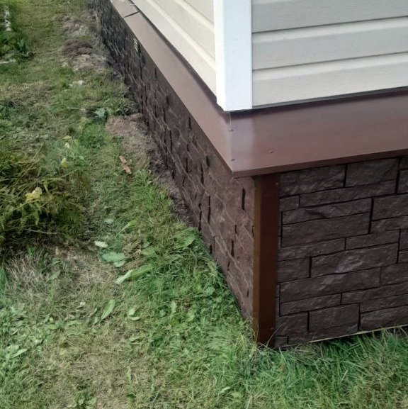 - Защита от разрушения. Открытый цоколь, особенно после подъема дома или ремонта фундамента, беззащитен перед влагой. Намокание приводит к разрушению материала основания, появлению трещин и развитию грибка. Зашивка создает непроницаемый экран, продлевая жизнь фундаменту.